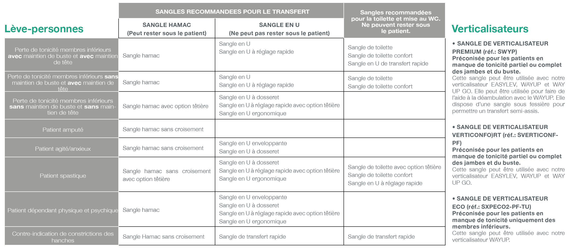✔ des lève-personnes adaptés à nos sangles